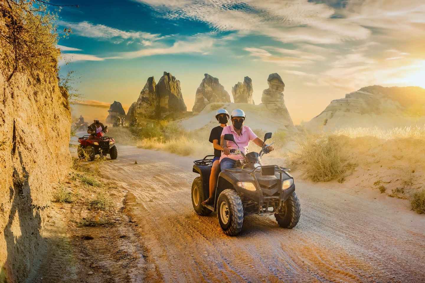 Experience the thrill of riding a quad bike through the stunning landscapes of Cappadocia, Turkey, with a sunrise or sunset adventure departing from Ürgüp or Göreme. This guided tour takes you off the beaten path to explore the region’s famous valleys and unique rock formations in the magical early morning or evening light.