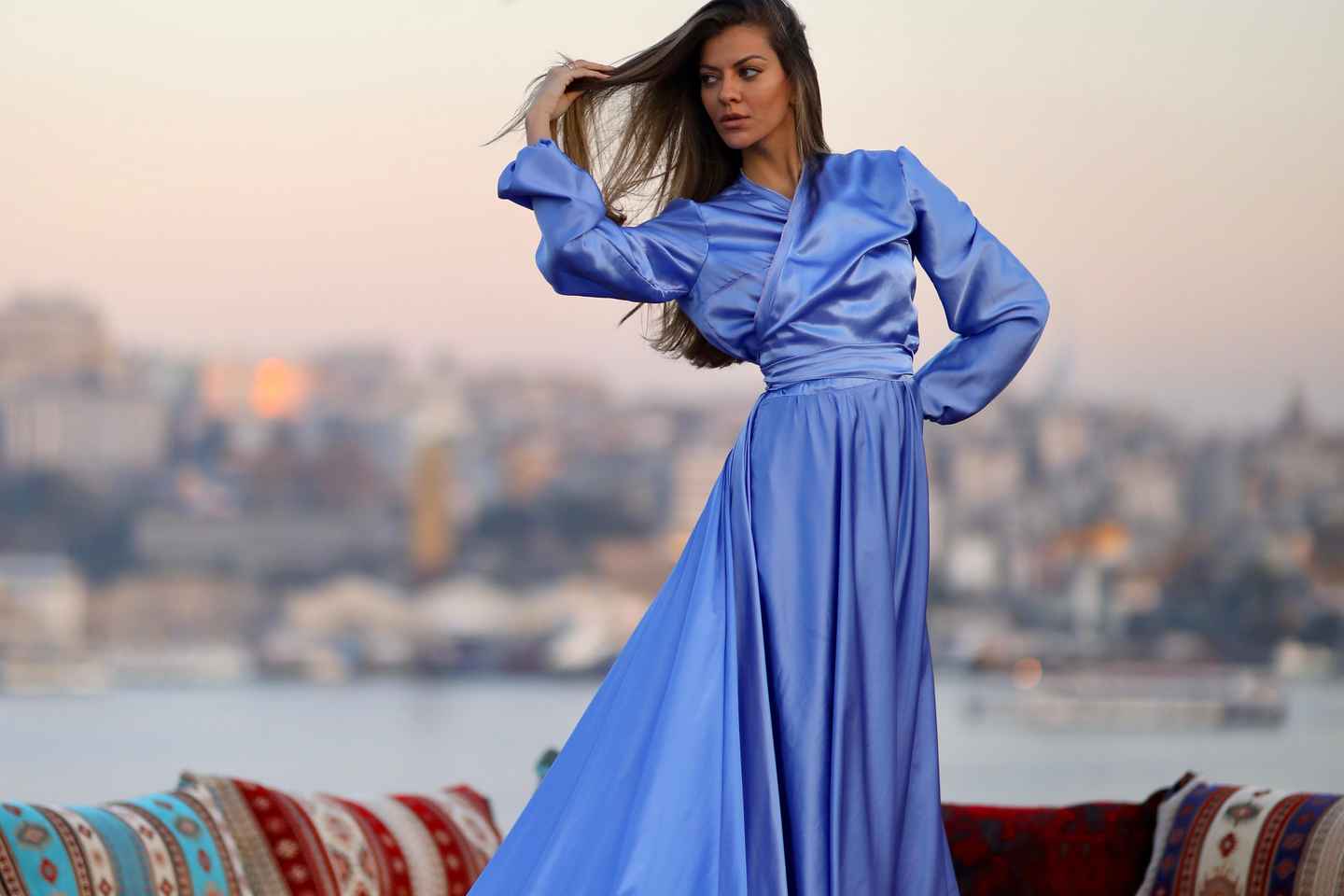 Begin your session with a welcome drink as you select a dress and prepare for your personalized shoot. Whether you want traditional Turkish motifs or a sleek urban style, the setting can be tailored to your taste. The sounds of seagulls and the gentle Bosphorus breeze add to the enchanting atmosphere.