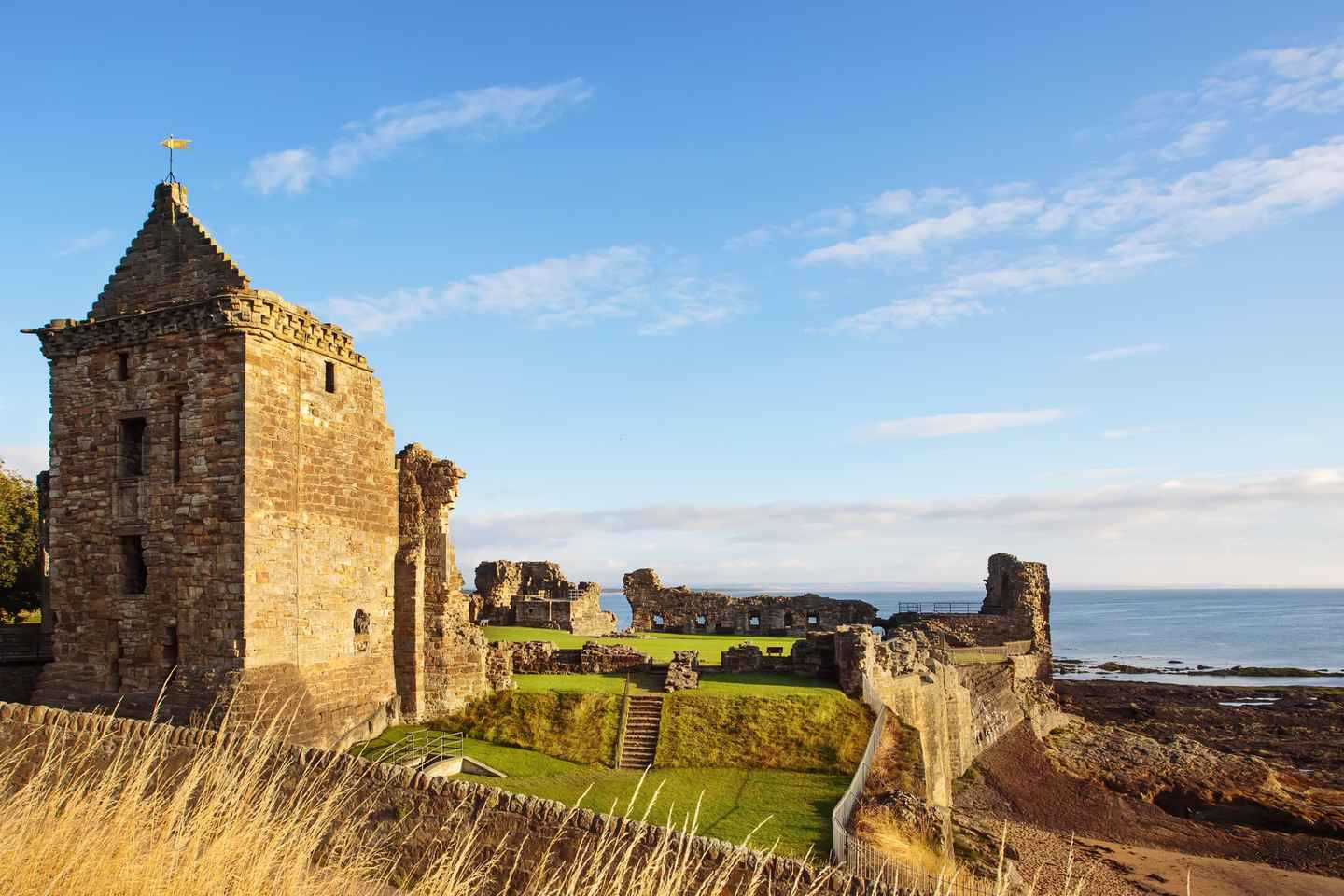 Your adventure continues to the medieval town of St Andrews, renowned for its historic university, dramatic coastal ruins, and connection to Scotland’s patron saint. Enjoy several hours to wander the cobbled streets, visit the ancient castle, or relax in a local café overlooking the sea.