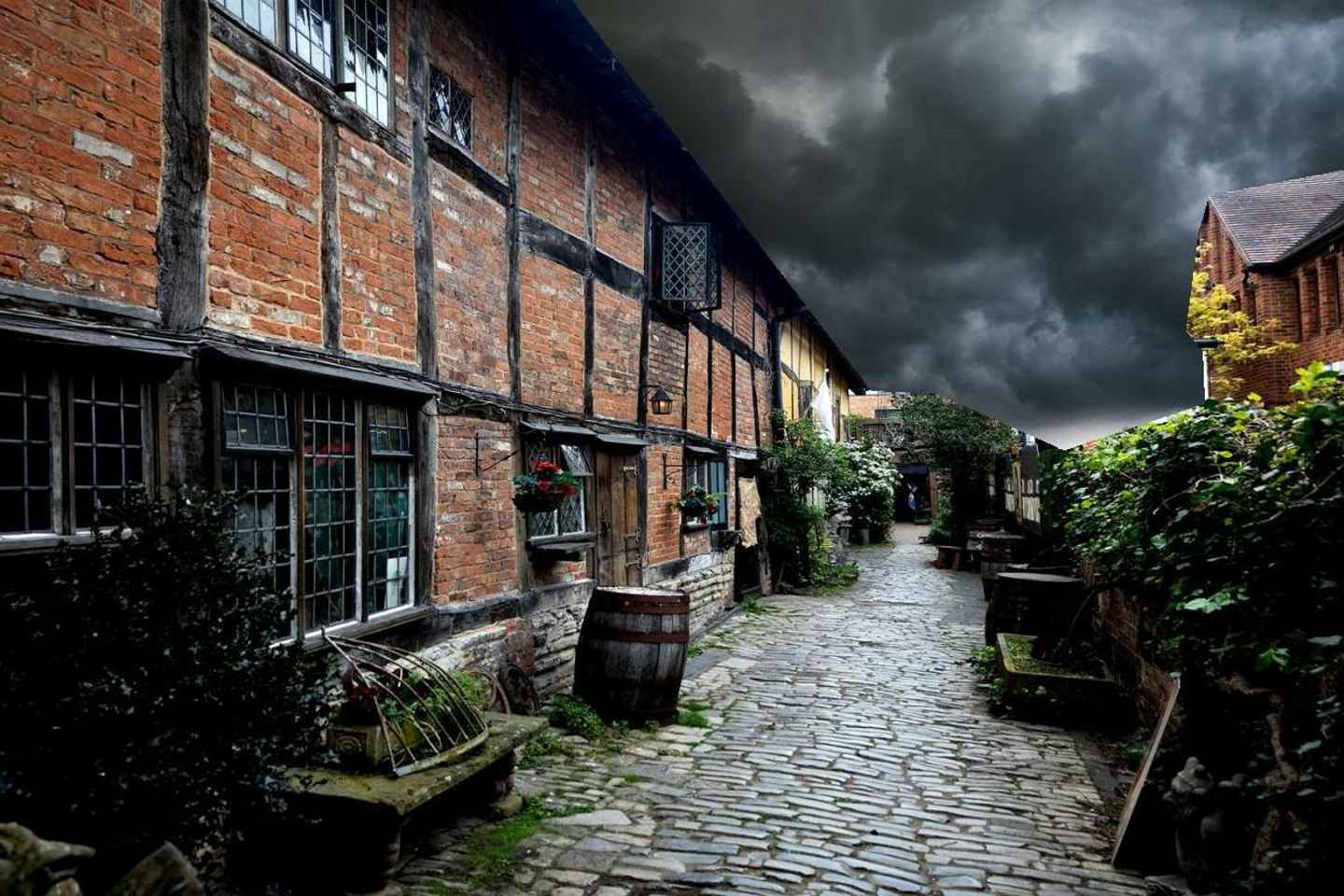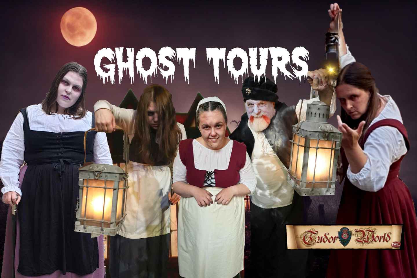 Experience a spine-tingling ghost tour in Stratford-upon-Avon, England, as you explore the historic Tudor World museum by lantern light. Begin your evening in the atmospheric cobbled courtyard, greeted by your costumed ghost guide who sets the mood for a night of chilling tales.
