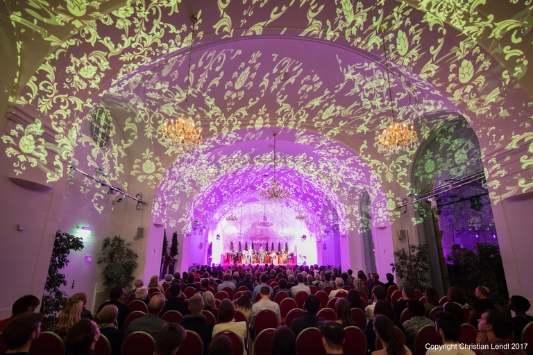 晚上8:00,橙园向您敞开大门,带来一场引人入胜的古典音乐会。在此,您可选择座位,享受由著名的美泉宫管弦乐团和室内乐团演奏的莫扎特和施特劳斯作品。