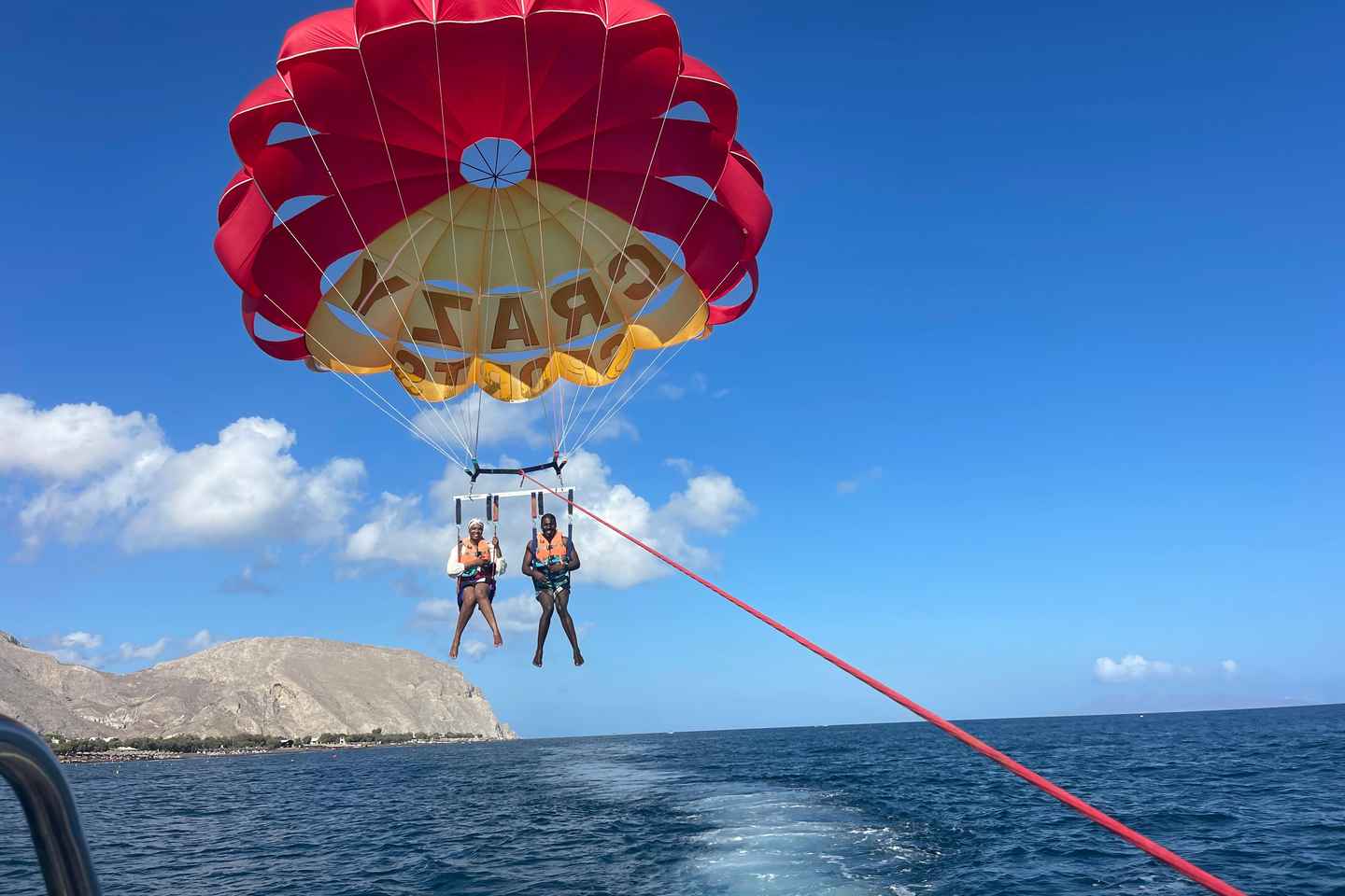 体验在圣托里尼迷人海滩上空滑翔伞飞行的刺激!无需培训,任何人都能轻松享受从空中俯瞰的壮丽景色。活动开始前,我们会进行简短的安全指导,随后由教练提供所需的全部装备。