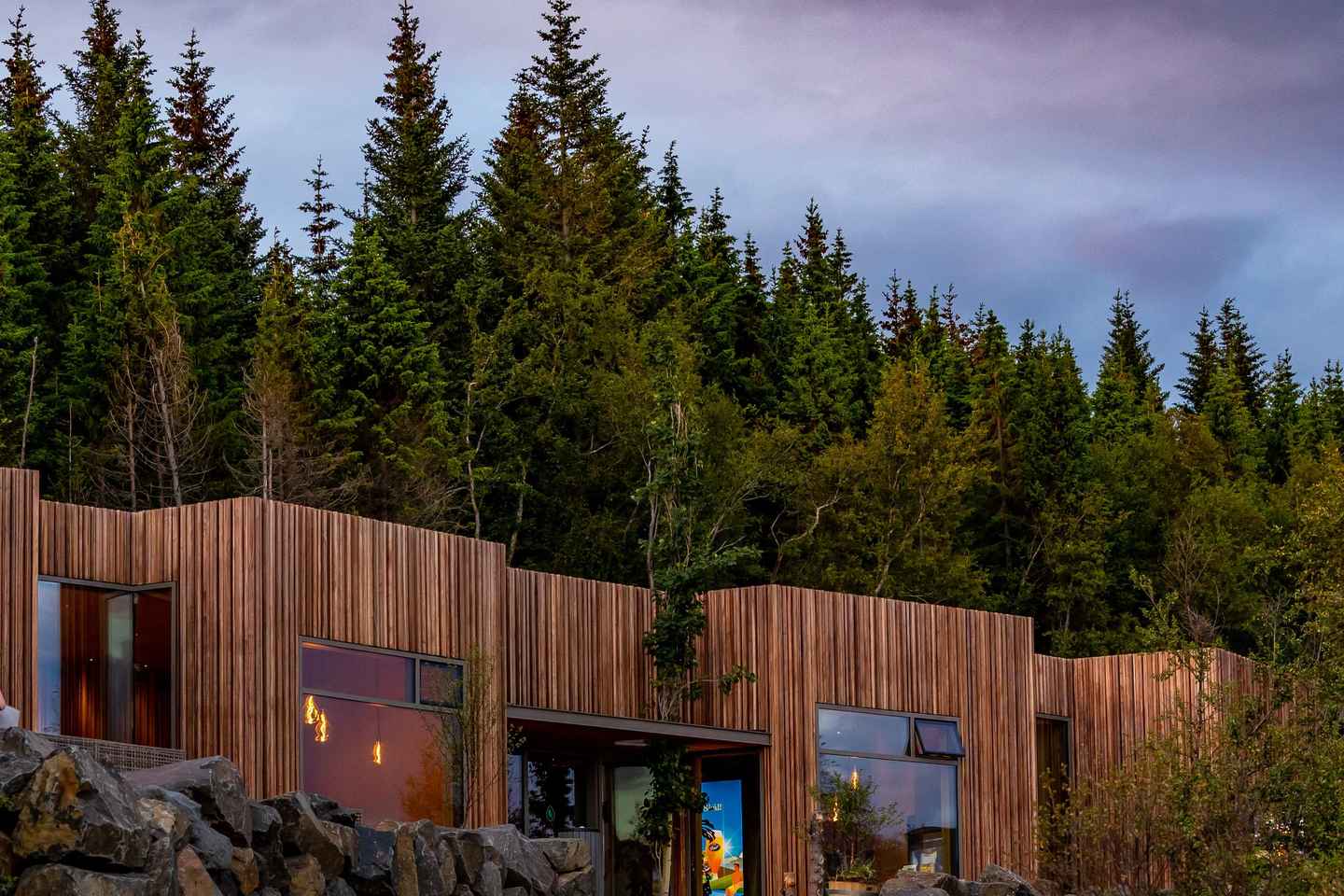 在森林小酒馆提升您的体验,在木质装潢的环境中享用高品质的餐点。俯瞰埃亚峡湾,并有温馨的室内壁炉,这里的用餐是您森林温泉之旅不可错过的一部分。