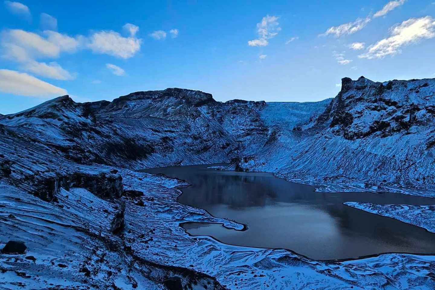 探访引人注目的Ljótipollur火山口湖,在这里,碧蓝的湖水与红色的山坡交相辉映。欣赏完这些美景后,您还可以在舒适的地热温泉中放松身心,这无疑是此次旅程的一大亮点。享受探索与放松的完美结合。