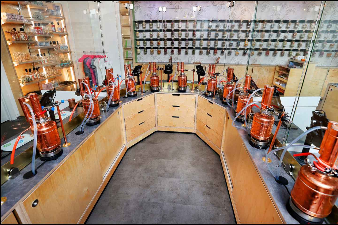 踏上一次令人愉悦的旅程,了解蒸馏的历史,并探索展示120种独特植物的墙面。