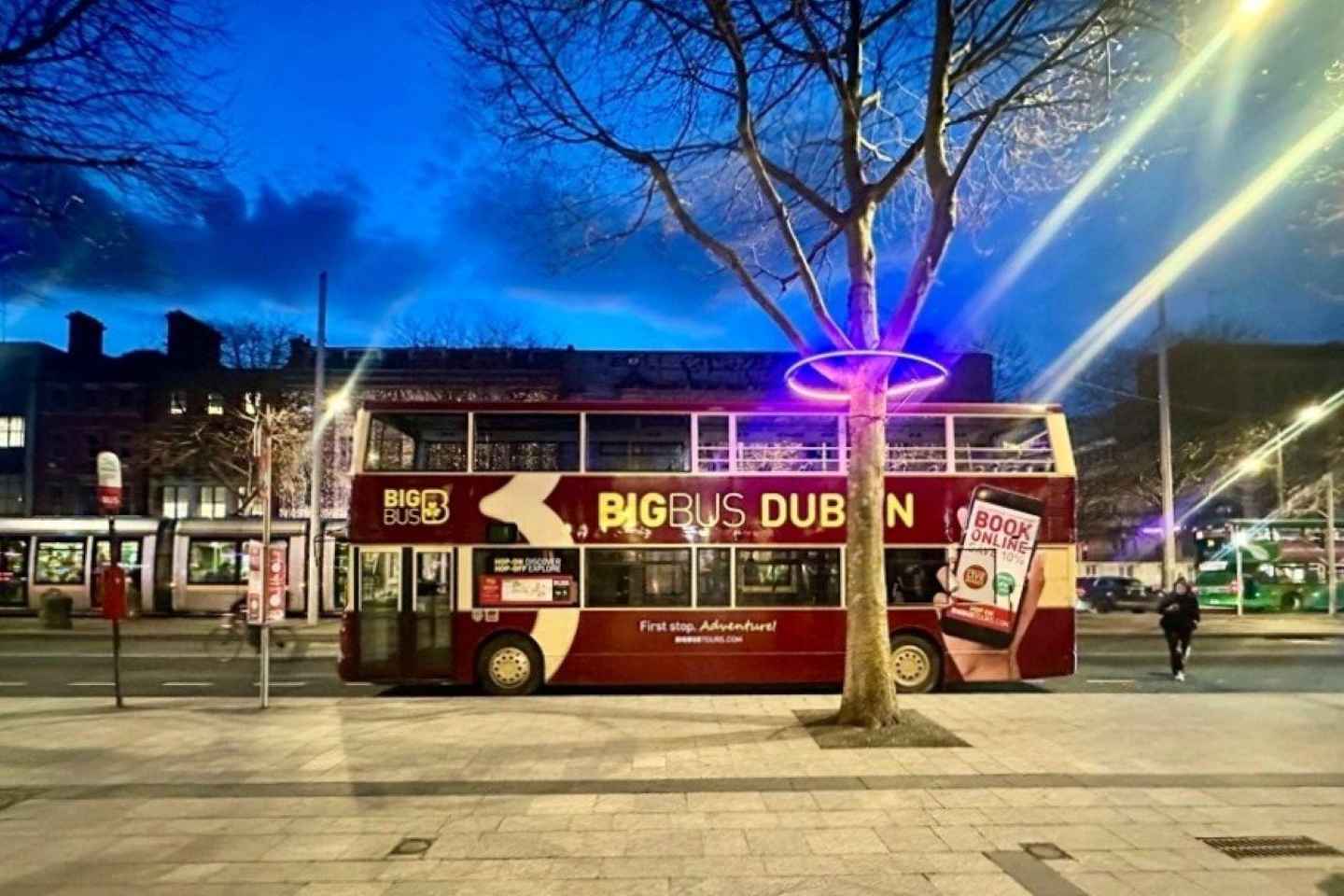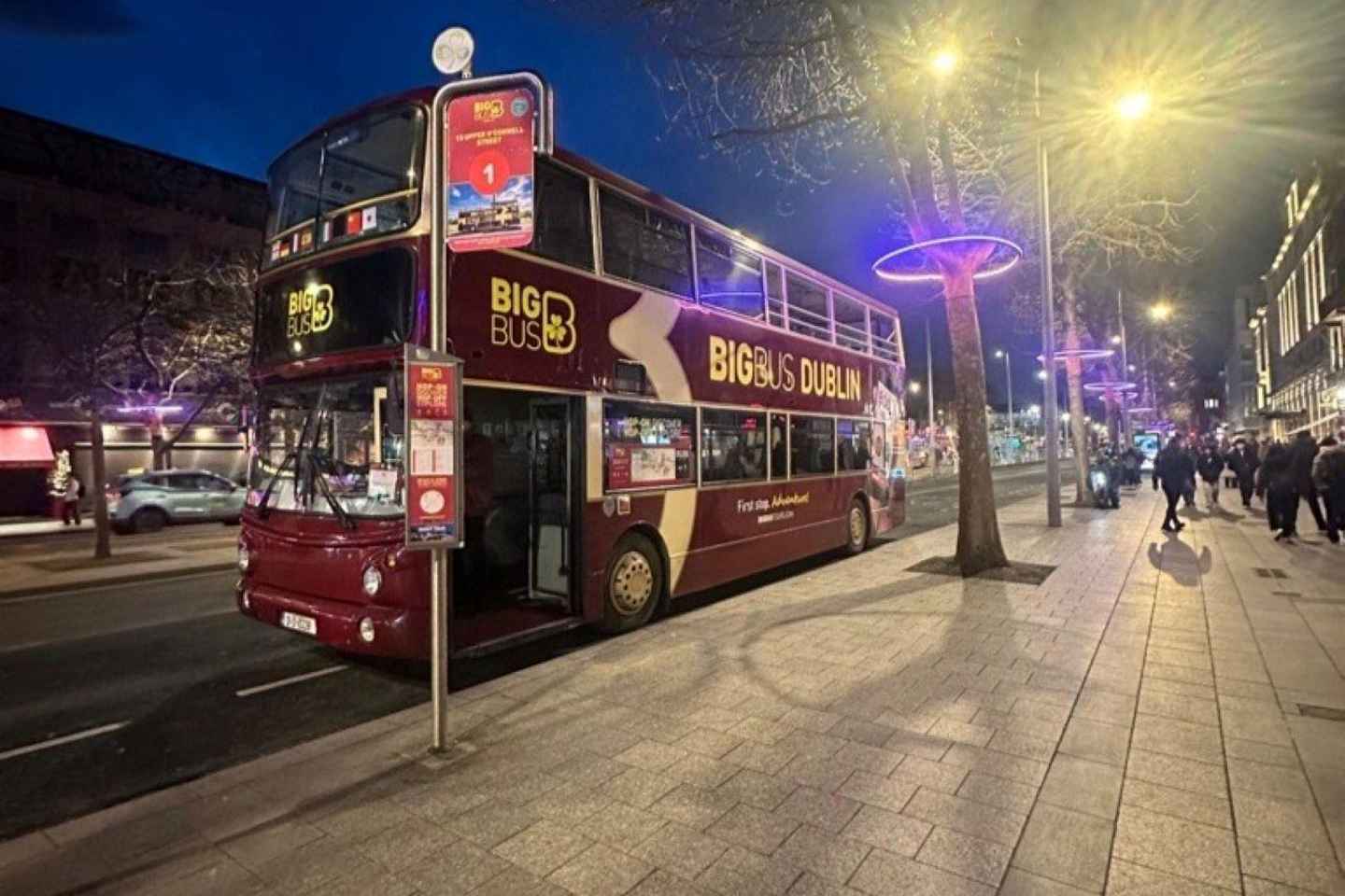 搭乘敞篷双层巴士,探索都柏林充满活力的夜生活!这场全景夜间游为您提供了一个独特的机会,让您在城市最著名地标的陪伴下,欣赏闪烁的灯光。