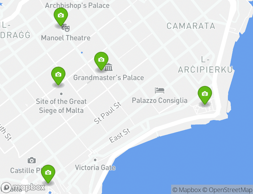 此活动从Triton Fountain启程。在这一冒险之旅中,您会看到当地几个热门景点。此行程中的一些亮点有Valletta Waterfront (Pinto Wharf), Upper Barrakka Gardens, Lower Barrakka Gardens, Teatru Manoel, and Marsamxett Harbour。附近的马耳他提供一些当地最好的观光胜地。St. John's Co-Cathedral (Kon-Katidral ta' San Gwann) and Grand Master's Palace是不容错过的几个最佳选择。