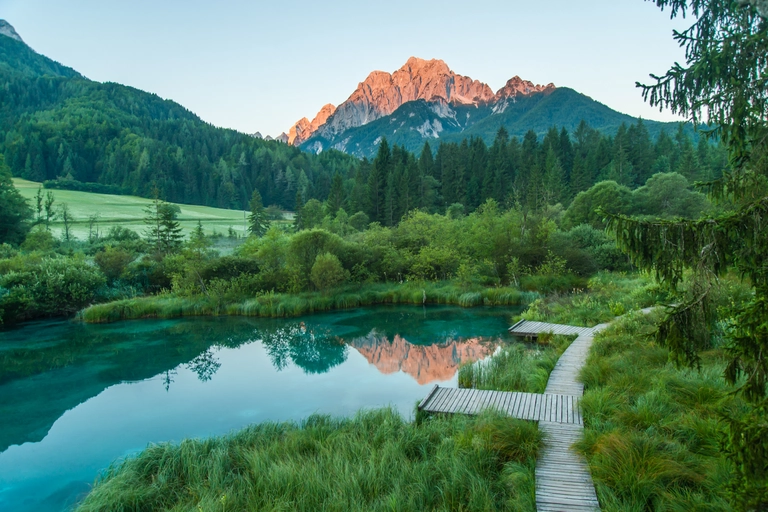 您的旅程将从著名的滑雪胜地克拉尼斯卡戈拉开始,这里以世界杯速降滑雪比赛而闻名。您可以悠闲漫步至风景如画的雅斯纳湖,在欣赏朱利安阿尔卑斯美景的同时,享用一杯咖啡。
