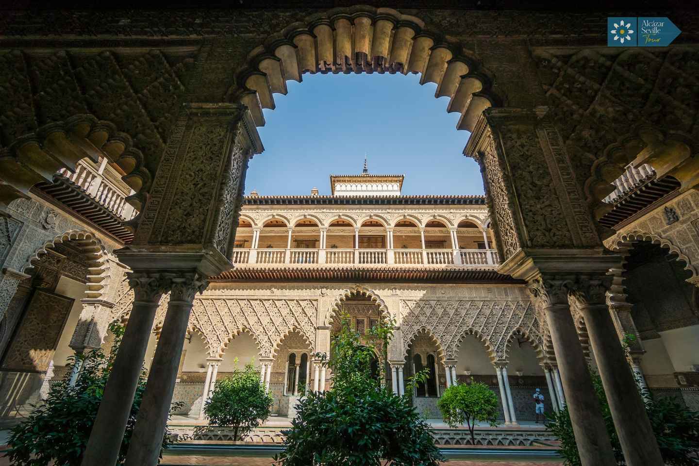 参观皇家阿尔卡萨尔,这一联合国教科文组织世界遗产以其建筑风格的融合而闻名。漫步其迷人的庭院和花园,了解其与影视作品的渊源。延长您的参观时间,享受阿尔卡萨尔宁静的花园和优雅的孔雀。